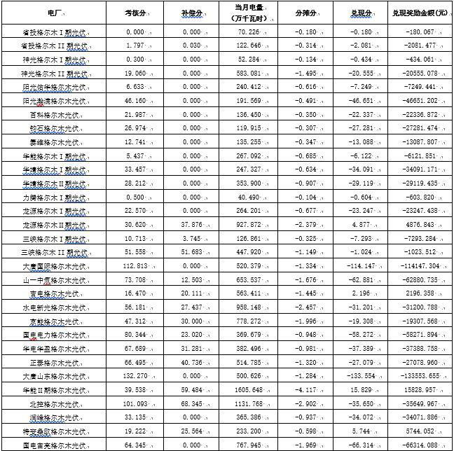 根據(jù)《國家能源局西北監(jiān)管局關(guān)于印發(fā)<西北區(qū)域發(fā)電廠并網(wǎng)運行管理實施細則>及<西北區(qū)域并網(wǎng)發(fā)電廠輔助服務(wù)管理實施細則>的通知》(西北監(jiān)能市場〔2018〕66號)規(guī)定,2019年10月份青海電網(wǎng)發(fā)電廠并網(wǎng)考核和輔助服務(wù)補償結(jié)果復(fù)核工作已完成,現(xiàn)予公布,請據(jù)此結(jié)算。