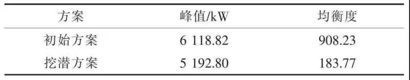 (3)建立綜合評(píng)價(jià)模型,評(píng)價(jià)指標(biāo)包含峰值、均衡度、成本3 個(gè)方面,且各指標(biāo)權(quán)重可根據(jù)實(shí)際情況調(diào)整。