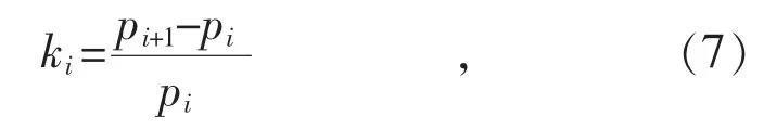 式中:pi為母線的第i 個(gè)負(fù)荷數(shù)據(jù)點(diǎn);pi+1為母線的第i+1 個(gè)負(fù)荷數(shù)據(jù)點(diǎn)。