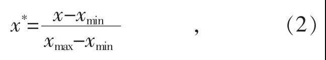 式中:x 為待歸一化量;x* 為歸一化后量;xmax,xmin分別為最大值、最小值。