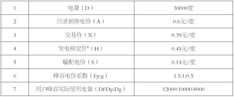 舉一個例子說明不同結(jié)算方式對輸配電價制度落地的影響:某一部制電價工商業(yè)用戶目錄銷售電價為0.6元/度3,與發(fā)電企業(yè)直接交易,簽訂某日直接交易合同電量為30000度,交易電價為0.39元/度,國家核定該省該類型該電壓等級工商業(yè)用戶輸配電價0.14元/度。該用戶平段時段用電10000度,高峰時段用電12000度,低谷時段用電8000度,該用戶原目錄銷售電價享受峰谷電價浮動比為(峰平谷,下同)1.5:1:0.5(本文各種結(jié)算方式用戶數(shù)據(jù)均采用上述設(shè)置)。具體如下表所示: