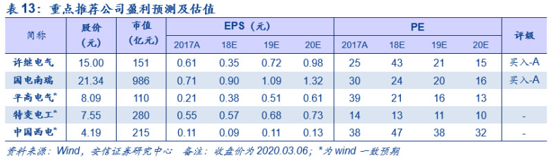 3.2. 投資建議:重點(diǎn)推薦許繼、平高和南瑞