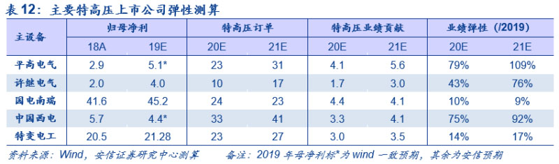 根據(jù)各上市公司主要涉及的產(chǎn)品及過往特高壓板塊盈利水平,我們對(duì)主要上市公司的盈利彈性進(jìn)行了測(cè)算,結(jié)果如下: