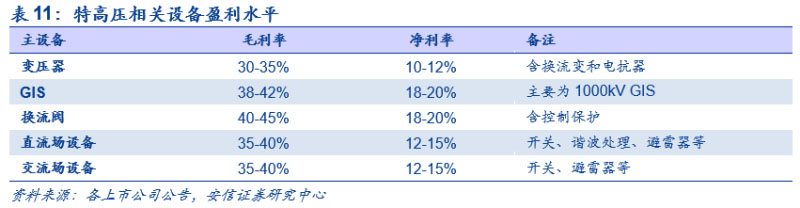 特高壓相關(guān)設(shè)備的盈利水平通常較高,根據(jù)過往上市公司發(fā)布的公告來看,毛利率一般保持在30%以上,凈利率水平一般在10%以上。