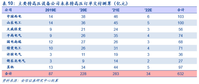 基于上述交付節(jié)奏假設(shè),我們對(duì)主要公司未來幾年的特高壓交付訂單做如下測(cè)算: