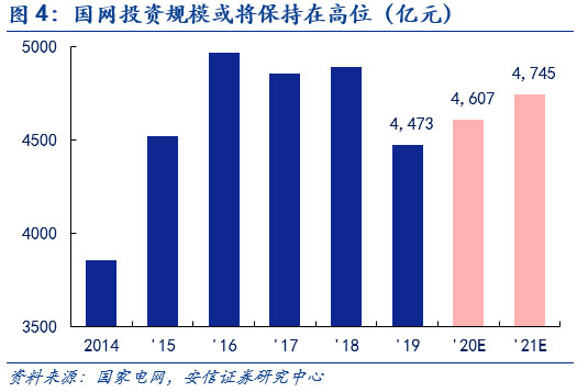 2、電網(wǎng)投資或?qū)⒕S持在高位,2020/21年是特高壓項(xiàng)目集中建設(shè)期