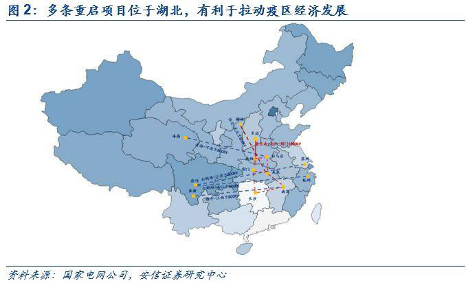 ■保民生穩(wěn)增長(zhǎng),國(guó)網(wǎng)重點(diǎn)推進(jìn)一批建設(shè)工程項(xiàng)目。 2月10日,國(guó)網(wǎng)印發(fā)了《關(guān)于做好疫情防控積極推進(jìn)重點(diǎn)工程建設(shè)的通知》,提出全力恢復(fù)建設(shè)助推企業(yè)復(fù)工復(fù)產(chǎn)共計(jì)12條舉措。按照“2月15日前復(fù)工一批、2月底前復(fù)工不低于50%、3月15日前除湖北省外全面復(fù)工”基本原則,已有1,600多項(xiàng)電網(wǎng)基礎(chǔ)設(shè)施工程已經(jīng)開工復(fù)工,投資規(guī)模超過了1,000億元。擬核準(zhǔn)開工建設(shè)的荊門-武漢-長(zhǎng)沙-南昌等多條線路均為華中環(huán)網(wǎng)工程,再加上投資185億的陜北-武漢±800KV特直工程,將直接提振湖北經(jīng)濟(jì)社會(huì)發(fā)展信心。