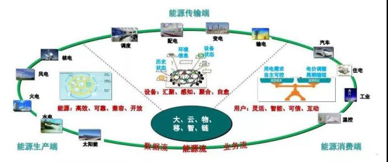 能源互聯(lián)網(wǎng)指把一個(gè)集中式的?單向的?生產(chǎn)者控制的能源系統(tǒng),轉(zhuǎn)變成大量分布式輔助?較少集中式的和與更多的消費(fèi)者互動(dòng)的能源網(wǎng)絡(luò),主要涉及5個(gè)方面: