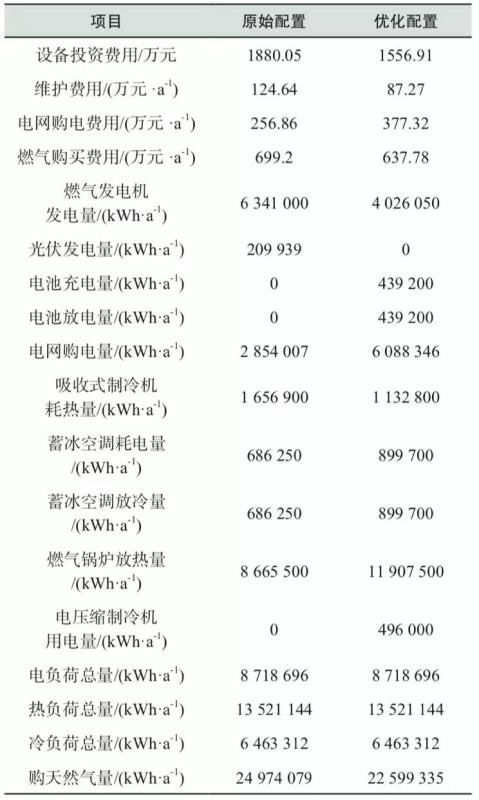 在建立起CloudIEPS數(shù)字孿生模型后,即可調(diào)用集成優(yōu)化模塊中的優(yōu)化算法內(nèi)核來實現(xiàn)案例系統(tǒng)的優(yōu)化設(shè)計。具體結(jié)果見表1。