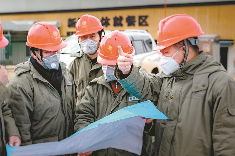 供電員工在雷神山醫(yī)院建設(shè)工地現(xiàn)場討論施工方案。左衛(wèi)兵 攝