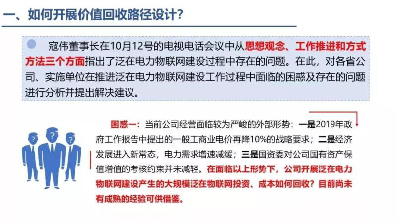 寇偉曾在國家電網(wǎng)泛在電力物聯(lián)網(wǎng)建設(shè)工作推進(jìn)會議中從思想觀念、工作推進(jìn)和方式方法三個方面指出了泛在電力物聯(lián)網(wǎng)建設(shè)過程中存在的問題。當(dāng)前面臨較為嚴(yán)峻的外部形勢:一是2019年政府工作報(bào)告中提出的般工商業(yè)電價(jià)再降10%的戰(zhàn)略要求; 二是經(jīng)濟(jì)發(fā)展進(jìn)入新常態(tài),電力需求增速減緩;三是國資委對公司國有資產(chǎn)保值增值的考核約束并未減輕。