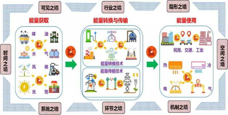 行業(yè)之墻:不同傳統(tǒng)能源冷、熱、電、氣行業(yè)之間的交流壁壘,遍及能量的獲取、轉(zhuǎn)換與傳輸、使用等環(huán)節(jié);