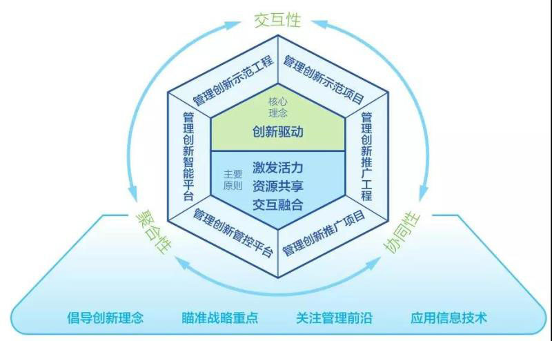 管理創(chuàng)新實(shí)施路徑以創(chuàng)新驅(qū)動(dòng)為核心理念,以“激發(fā)活力、資源共享、交互融合”為主要原則,以管理創(chuàng)新示范工程、管理創(chuàng)新推廣工程、管理創(chuàng)新管控平臺(tái)、管理創(chuàng)新智能平臺(tái)為主要內(nèi)容,以“聚合性、交互性、協(xié)同性”為主要特點(diǎn)。