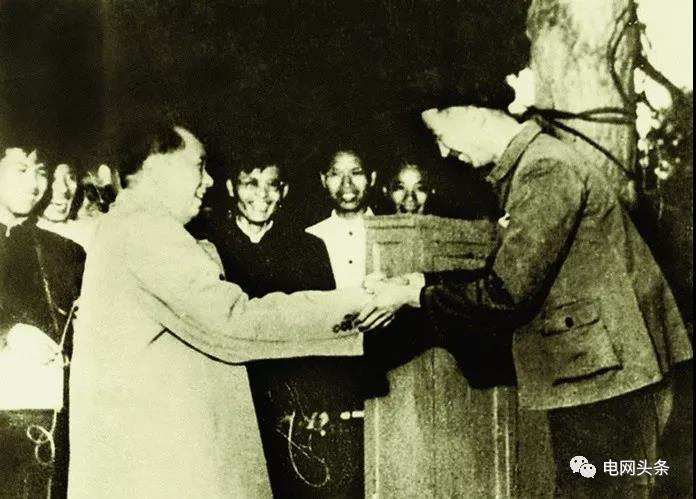 ▼毛主席握著工人宋學(xué)林(右一)的手說(shuō):“你們真了不起!”