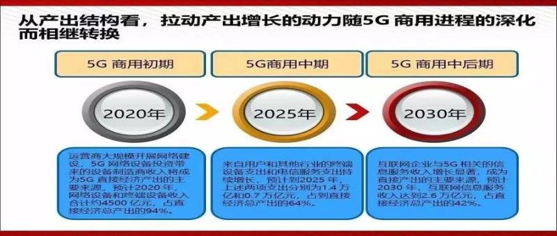 中國信息通信研究院預(yù)計,2020到2025年期間,中國5G商用間接拉動的經(jīng)濟總產(chǎn)出約24.8萬億元,間接帶動的經(jīng)濟增加值達(dá)8.4萬億元。