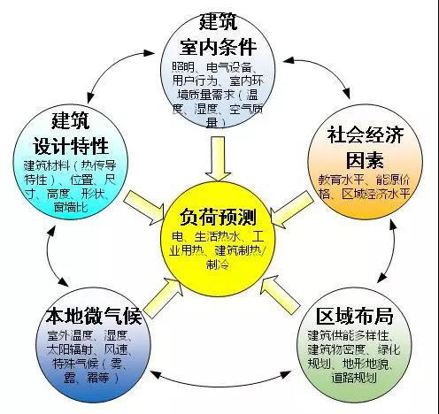 DIES的用能需求是所有分散于區(qū)域內(nèi)的能源消費(fèi)用戶用能需求的總和,因此對(duì)單個(gè)用戶單元的影響因素往往也會(huì)對(duì)整個(gè)區(qū)域用能情況造成類似影響,比如建筑的物理特性、照明、用戶行為、用能類型、建筑密度、布局、人口密度等。可將所有可能對(duì)DIES負(fù)荷造成影響的因素歸納為五大類:建筑室內(nèi)條件、建筑設(shè)計(jì)特性、區(qū)域布局、本地微氣候和社會(huì)經(jīng)濟(jì)性。
