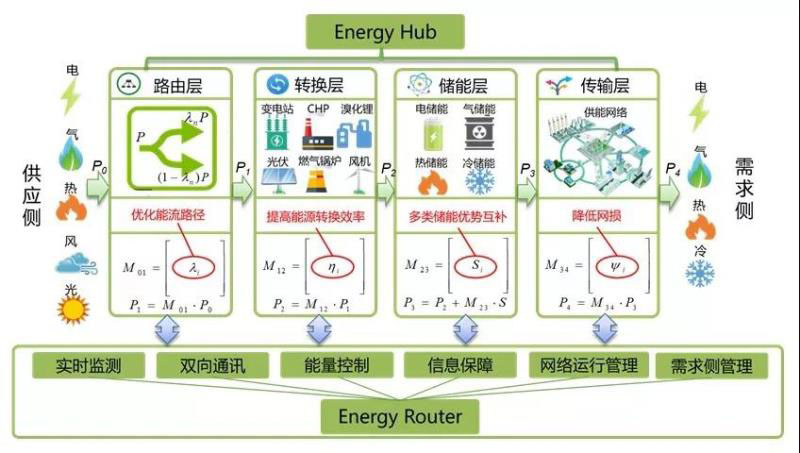 能源路由器 (Energy Router) 概念是由美國(guó)北卡州立大學(xué) FREEDM中心的Alex Q. Huang提出的用于解決DIES能源耦合過(guò)程中信息流問(wèn)題的模型。Energy Router側(cè)重于DIES的通信、控制與管理。Energy Router從信息層面對(duì)Energy Hub提供支持,有利于促進(jìn)未來(lái)DIES的進(jìn)一步發(fā)展。