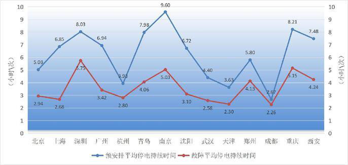各城市的預(yù)安排停電平均持續(xù)時(shí)間和故障停電平均持續(xù)時(shí)間詳見圖3。