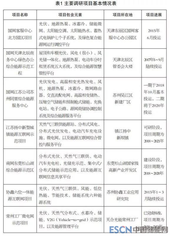 筆者重點調(diào)研了天津、江蘇、廣東地區(qū)開展綜合能源服務的五家企業(yè),涉及近十個綜合能源服務項目。從調(diào)研結(jié)果看,國網(wǎng)天津公司綜合能源服務推廣初顯成效,國網(wǎng)江蘇公司綜合能源服務進展迅速,南網(wǎng)廣東公司正積極探索園區(qū)級示范項目,協(xié)鑫全面布局“源網(wǎng)售用云”均已落地,天合光能著力打造“發(fā)儲配用云”能源物聯(lián)網(wǎng),基本情況見表1。