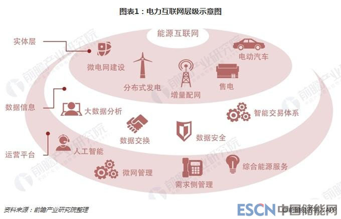 借鑒互聯(lián)網(wǎng)理念,可將電力能源互聯(lián)網(wǎng)分為三個層次,即實體層,數(shù)據(jù)信息層和運營平臺層。在實體網(wǎng)層面,以電力網(wǎng)絡(luò)為主體,涵蓋電力能源的生產(chǎn)、傳輸、消費、儲存和轉(zhuǎn)換的整個產(chǎn)業(yè)鏈;在數(shù)據(jù)信息層面,將采用基于廣泛傳感器的物聯(lián)網(wǎng)、大數(shù)據(jù)、云計算、人工智能等信息技術(shù),為電力能源生產(chǎn)、傳輸、消費、儲存和消費的整個產(chǎn)業(yè)鏈提供信息支撐;在運營平臺層面,則運用互聯(lián)網(wǎng)思維,以用戶為中心,在整個能源鏈上提供運營增值業(yè)務(wù)以及解決方案,最終為產(chǎn)業(yè)鏈實體各個企業(yè)提高效率,增加收益服務(wù)。