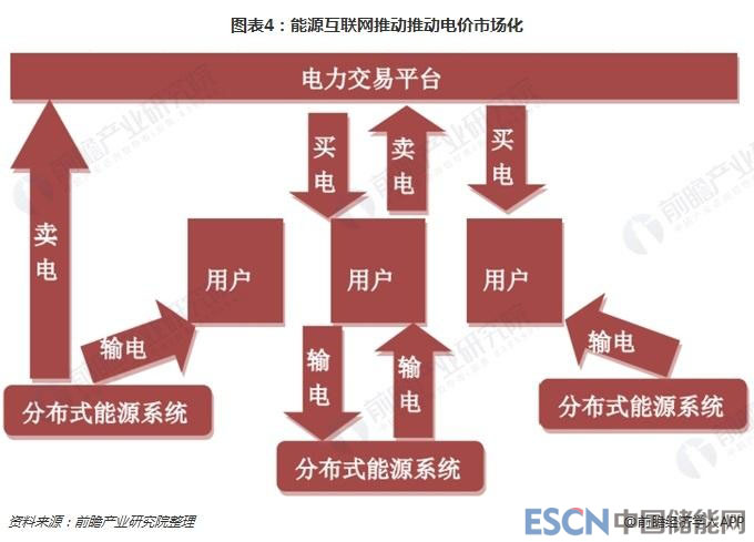 在資金交換方面,通過能源互聯(lián)網(wǎng),未來每個用電主體都可能成為售電主體,同時具有賣電和買電的需求。借助分布式能量采集裝置,終端用戶可自主發(fā)電并選擇將多余電能并入當(dāng)?shù)嘏潆娋W(wǎng)通過交易平臺進(jìn)行銷售。當(dāng)自主發(fā)電無法滿足需求時,終端用戶可從交易平臺中買電使用。隨著分布式能源儲存裝置的逐漸普及,終端用戶還可以在用電低谷時以低價購電將電力存儲起來,并在用電高峰時以高價將它們賣給有需要的用戶。能源互聯(lián)網(wǎng)有助于將電力轉(zhuǎn)變成一種可以任意買賣的普通商品,推動電價的市場化進(jìn)程。