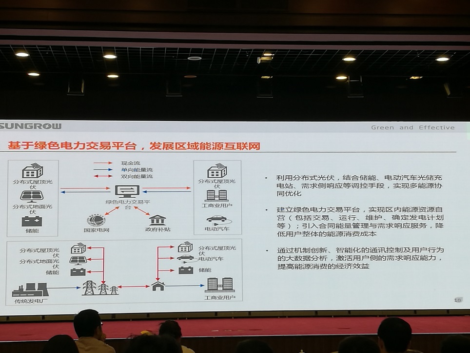 接著張總總結(jié)了可再生能源主要面臨新能源消納難、適應(yīng)性差、能效低、利用率低等問題。并進(jìn)一步提出了對于可再生能源一站式能源互聯(lián)網(wǎng)解決方案,包括:一、光伏+儲能深度融合提升新能源快速發(fā)展;二、光伏+儲能構(gòu)建智能微電網(wǎng);三、大型光儲及多能互補(bǔ)電站;四、發(fā)展區(qū)域微電網(wǎng),響應(yīng)用戶側(cè)需求;五、基于綠色電力交易平臺,發(fā)展區(qū)域能源互聯(lián)網(wǎng);六、光伏+儲能-戶用能量路由器,打造零能建筑;七、智能充電站,打造創(chuàng)新型能量管理系統(tǒng);八、完善價(jià)格機(jī)制,鼓勵(lì)探索新型交易模式;九、建立了基于互聯(lián)網(wǎng)與云計(jì)算技術(shù)的數(shù)據(jù)互聯(lián)共享平臺。