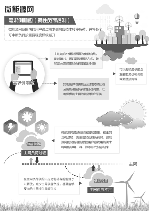 微能源網(wǎng)是一種智慧型能源綜合利用的區(qū)域網(wǎng)絡(luò)。它以能源的優(yōu)化利用為導(dǎo)向,是與能源互聯(lián)網(wǎng)有機鏈接的智能化區(qū)域能源生產(chǎn)、使用、存儲、調(diào)度、控制的系統(tǒng),是能源互聯(lián)網(wǎng)的基本組成部分。它具備較高的新能源接入比例,相對獨立運行,可通過能量存儲和優(yōu)化配置,實現(xiàn)本地能源生產(chǎn)與用能負荷基本平衡,實現(xiàn)風(fēng)、光、天然氣等各類分布式能源多能互補,并可根據(jù)需要與公共電網(wǎng)靈活互動。