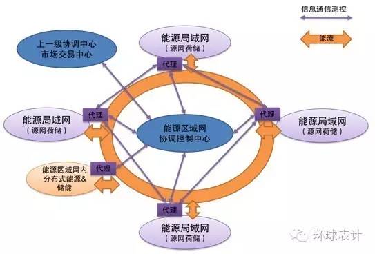 如上圖所示:未來的能源互聯(lián)網(wǎng)可能由若干自洽的能源局域網(wǎng),以及局域網(wǎng)之間的能源區(qū)域網(wǎng)絡(luò),以及更高一級的協(xié)調(diào)中心/交易中心構(gòu)成。每個(gè)能源局域網(wǎng)可能是一個(gè)用戶側(cè)的微網(wǎng)、或者是園區(qū)級的微網(wǎng);而能源區(qū)域網(wǎng)絡(luò)可以是用戶間的微網(wǎng),或者是園區(qū)間、區(qū)域級的微網(wǎng),甚至未來的能源局域網(wǎng)可以走出能源網(wǎng)絡(luò)物理邊界的限制,在虛擬電廠-虛擬負(fù)荷-虛擬網(wǎng)絡(luò)的基礎(chǔ)上,形成虛擬的能源網(wǎng)絡(luò),就像電信技術(shù)的VPN一樣。