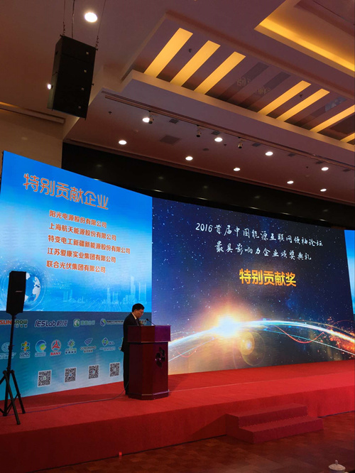 中國儲能網(wǎng)訊:9月21,Solarbe現(xiàn)場報道,在2016年首屆中國能源互聯(lián)網(wǎng)領(lǐng)袖論壇暨2016中國能源年度人物頒獎典禮上,陽光電源、航天新能源、特變電工、江蘇愛康和聯(lián)合光伏榮獲“特別貢獻獎”。