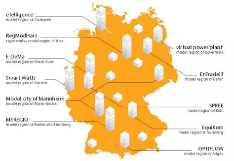 圖9:德國(guó)E-Energy計(jì)劃中的六個(gè)主要示范項(xiàng)目和五個(gè)小項(xiàng)目
