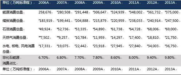 表2:中國(guó)的非化石能源消費(fèi)比重不斷提高