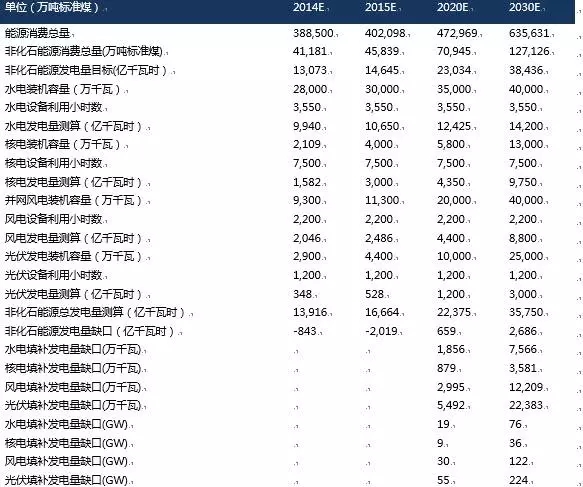 表3:2014-2030年中國(guó)的非化石能源消費(fèi)比重目標(biāo)